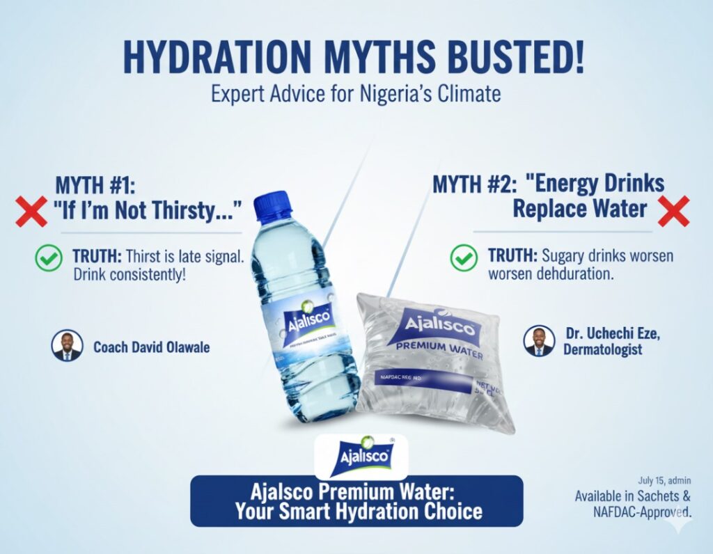 In this article, we’ll clear the air on common hydration myths, share expert advice from a Nigerian sports coach and dermatologist, and explain why Ajalisco Premium Water is the smart hydration choice for your health, skin, and daily energy levels.